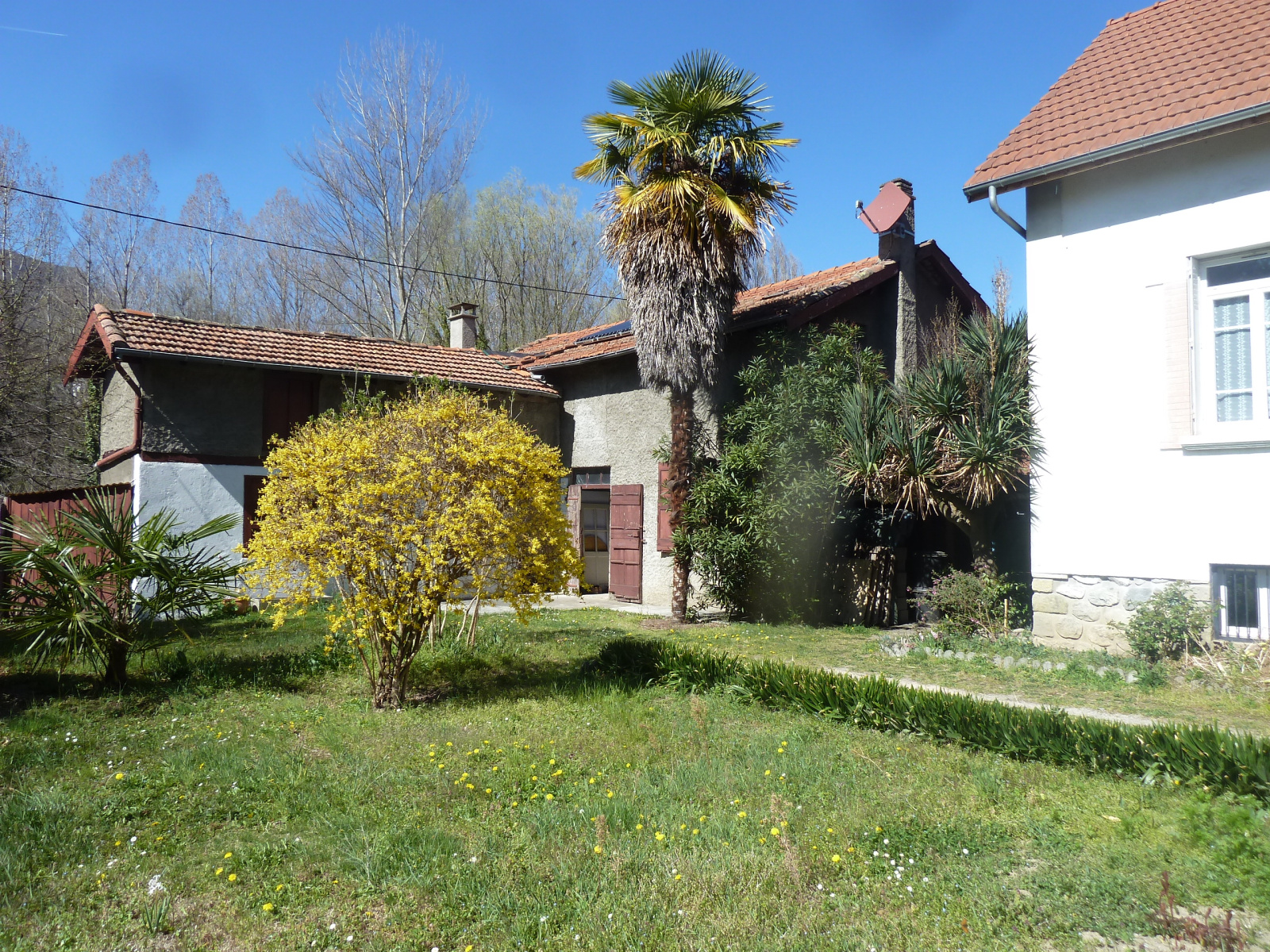 A deux minutes du centre ville, quartier calme et ensoleillé. Maison indépendante avec jardin et dépendances. Habitation composée au rez de chaussée : cuisine équipée donnant sur une terrasse, arrière cuisine, séjour poêle de masse, au demi étage un salon (ou chambre), au 1erétage un bureau, une chambre avec salle de bain et douche, au niveau supérieru une chambre avec salle d'eau, grenier. Au sous sol une cave et buanderie. Une première dépendance (possibilite de faire un studio) une deuxième dépendance .... . Jardin clôturé deux accés en véhicule.