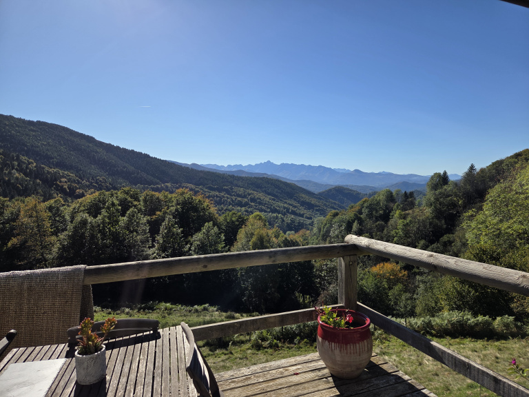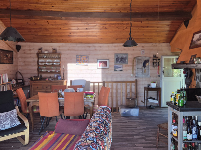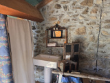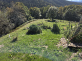 Maison indépendante en pierre avec dépendance et terrain. Composée, d'un séjour coin cuisine 25 m2 , terrasse bois vue extraordinaire; Au niveau inférieur, une chambre et salle de bain wc . A 5 m une dépendance avec une chambre, une bergerie. Chauffage poêle à bois, cheminée. Panneaux solaires pour eau chaude - électricité par groupe électrogéne - eau de source.