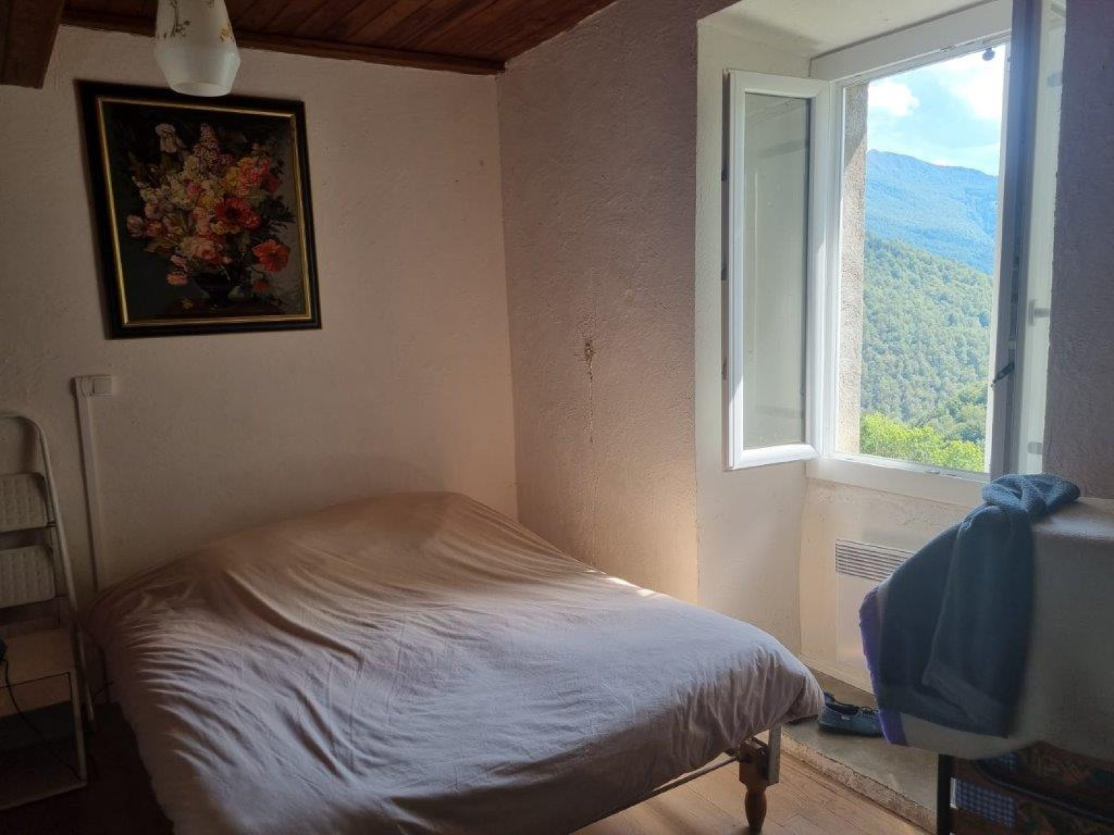 Maison indépendante avec jardin, située sur le flanc de la montagne, accès facile, vue superbe, ensoleillée. De plain pied, entrée, cuisine/séjour cheminée, deux chambres, salle d'eau et wc. Au niveau supérieur, une piéce et une chambre, rangements. Un cave. Une dépendance.