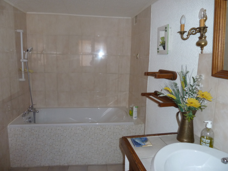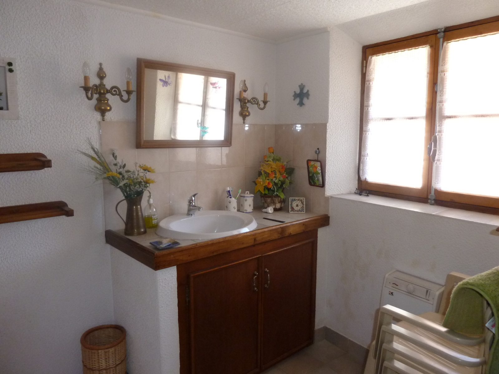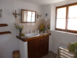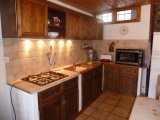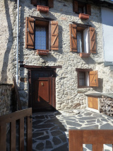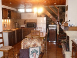 Maison rénovée avec terrasse. Au rdc, entrée, salle de bains WC, cellier. A l'étage, pièce de jour avec coin cuisine et cheminée insert - 2 chambres mansardées - un espace avec lits superposés.
