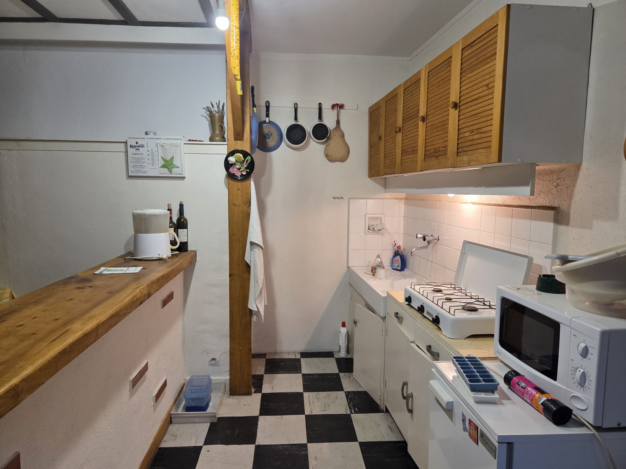 Habitation rénovée récemment, trois chambres, salle d'eau, 2 wc, salon, séjour avec coin cuisine équipée. Au rez de chaussée, une pièce pouvant servir de cuisine d'été ou autre. Une terrasse trés agréable, une grange servant de garage et rangement, un jardinet.