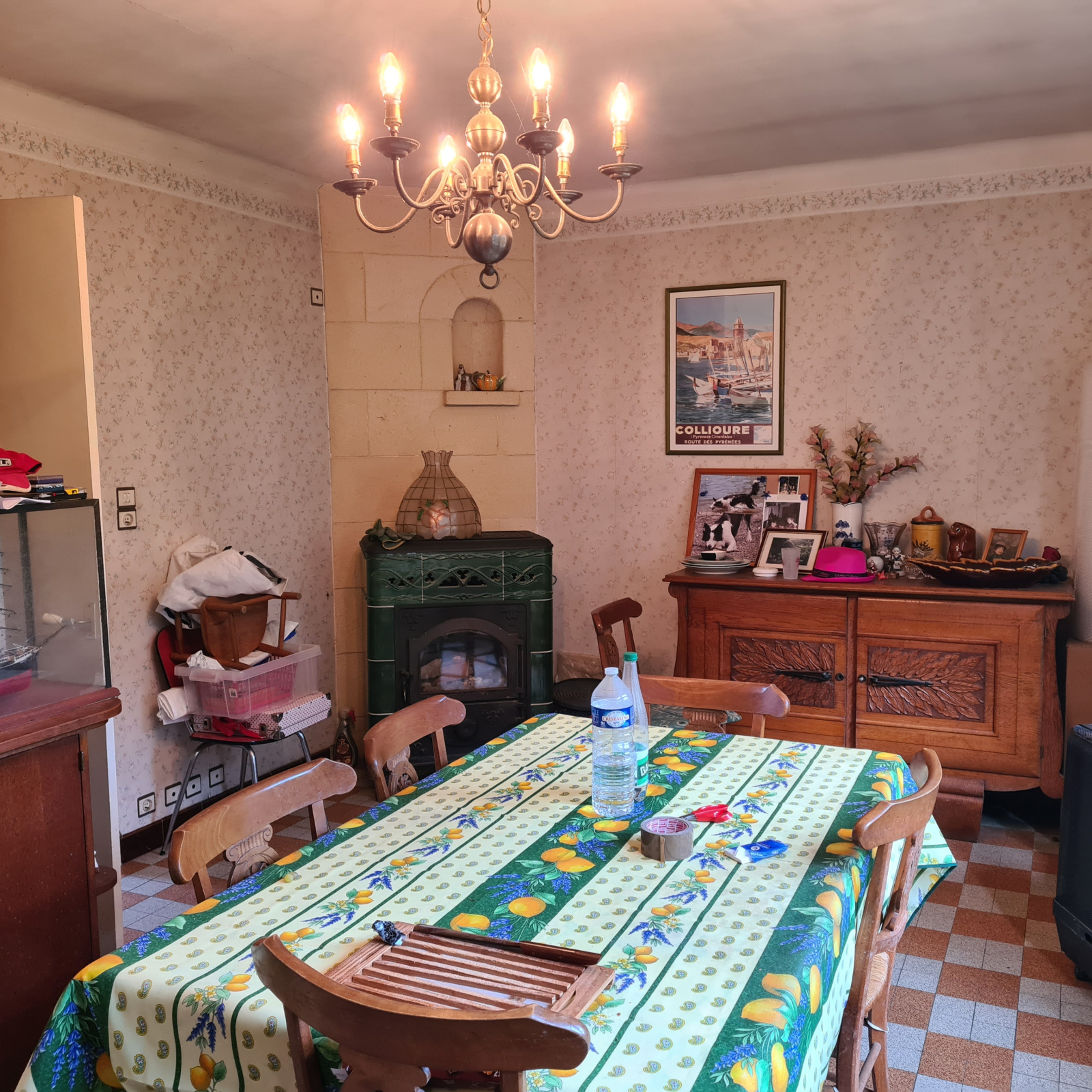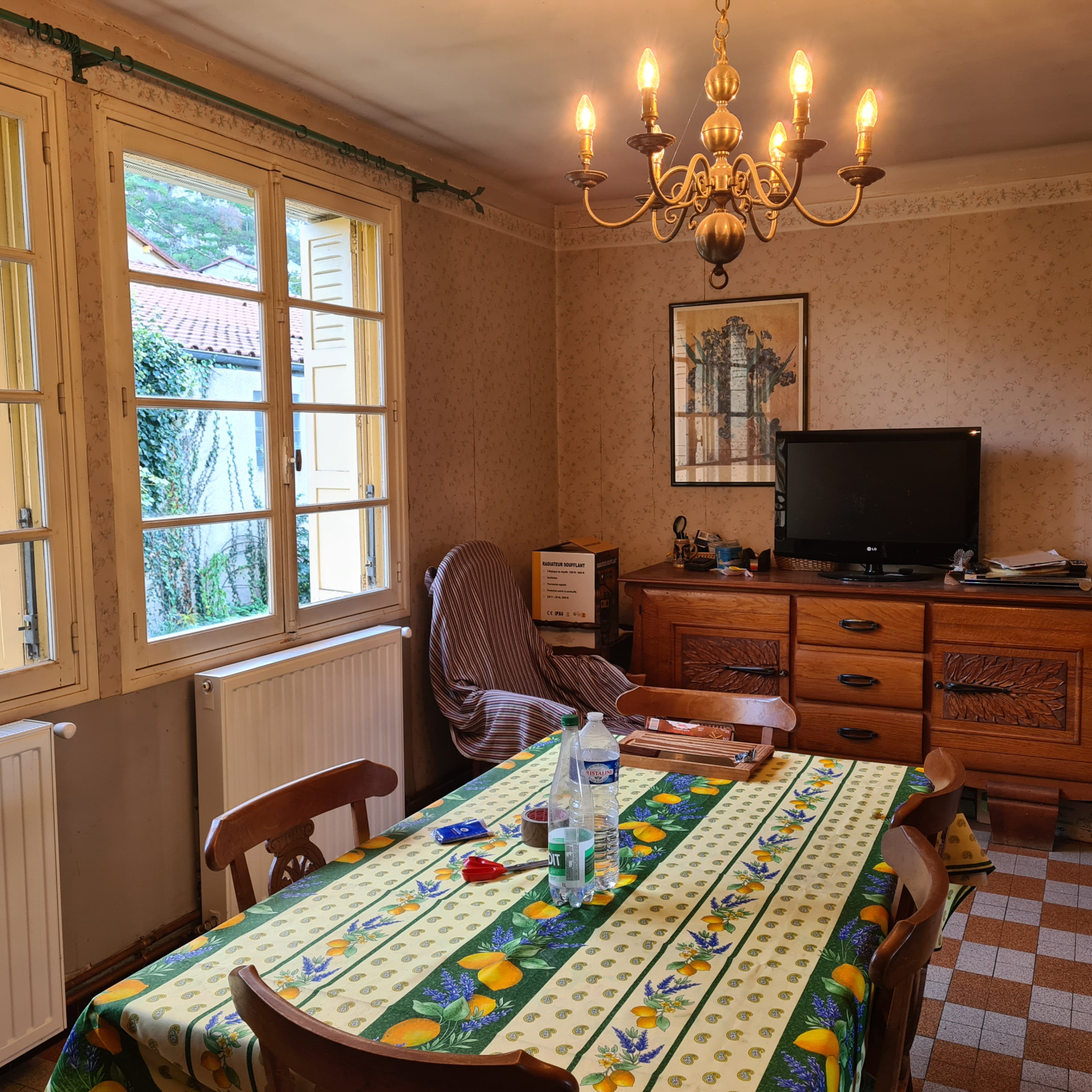 Habitation légérement surélevée, entrée, cuisine, séjour poêle à bois, trois chambres, un bureau, salle d'eau, wc, chaufferie et buanderie; En sous sol une cave. Un jardin clôturé, un garage 50 m2. Quartier calme, proche de Tarascon. Ecoles primaires dans le village.