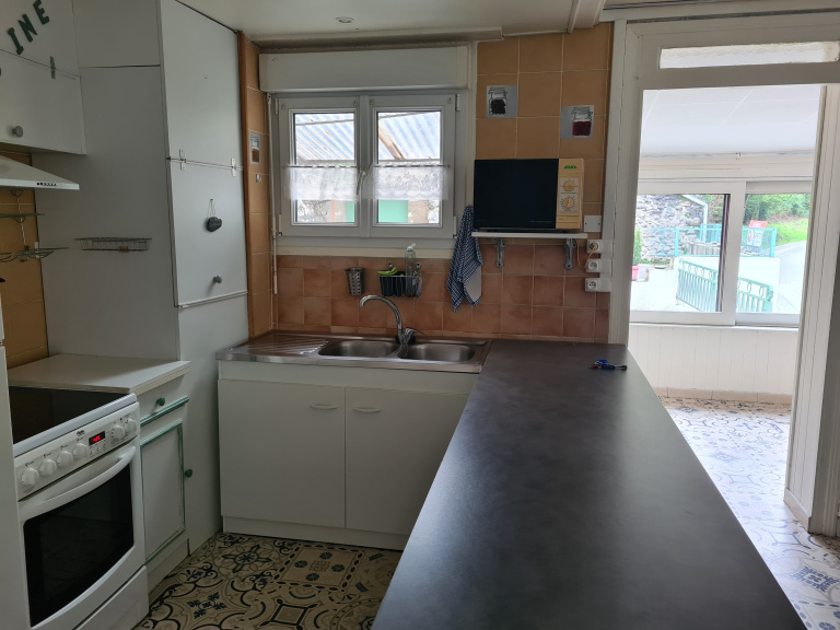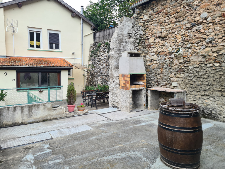 Maison avec terrasse grange et garage. Composée, entrée, toilettes, séjour cheminée insert coin cuisine, salle d'eau, wc, espace bureau. A l'étage 3 chambres. Une terrasse ou cour trés agréable, une grange 12 m2, un garage 29 m2. Vue dégagée sur les montagnes.