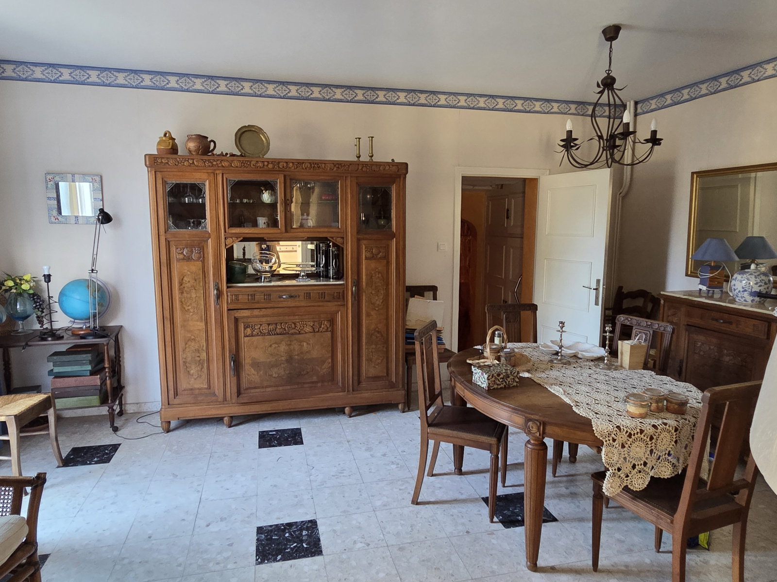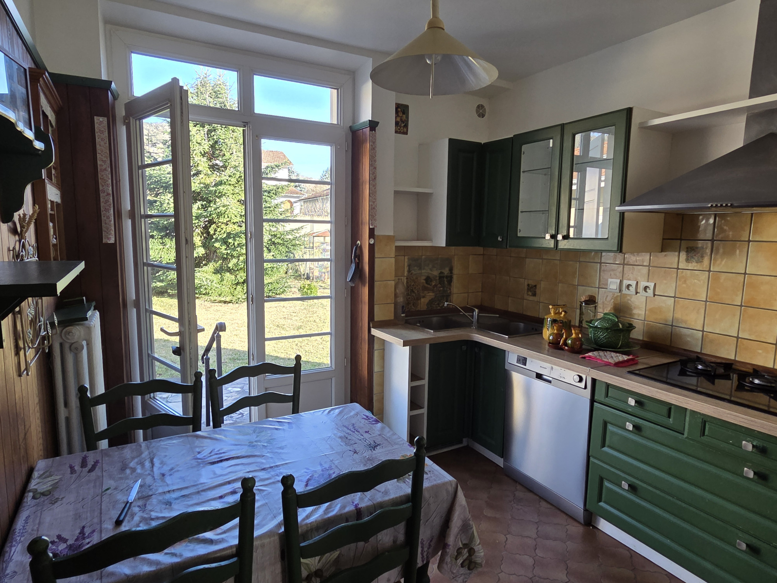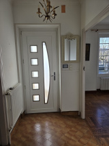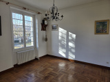 Villa légérement surélevée, entrée, séjour en L cheminée, cuisine équipée, trois chambres, salle d'eau, wc, un appartement T 2 séjour coin cuisine, une chambre salle d'eau wc. Un cave, chauffage central gaz, un garage. Pièces lumineuses, commerces à proximité, beaucoup de charme.