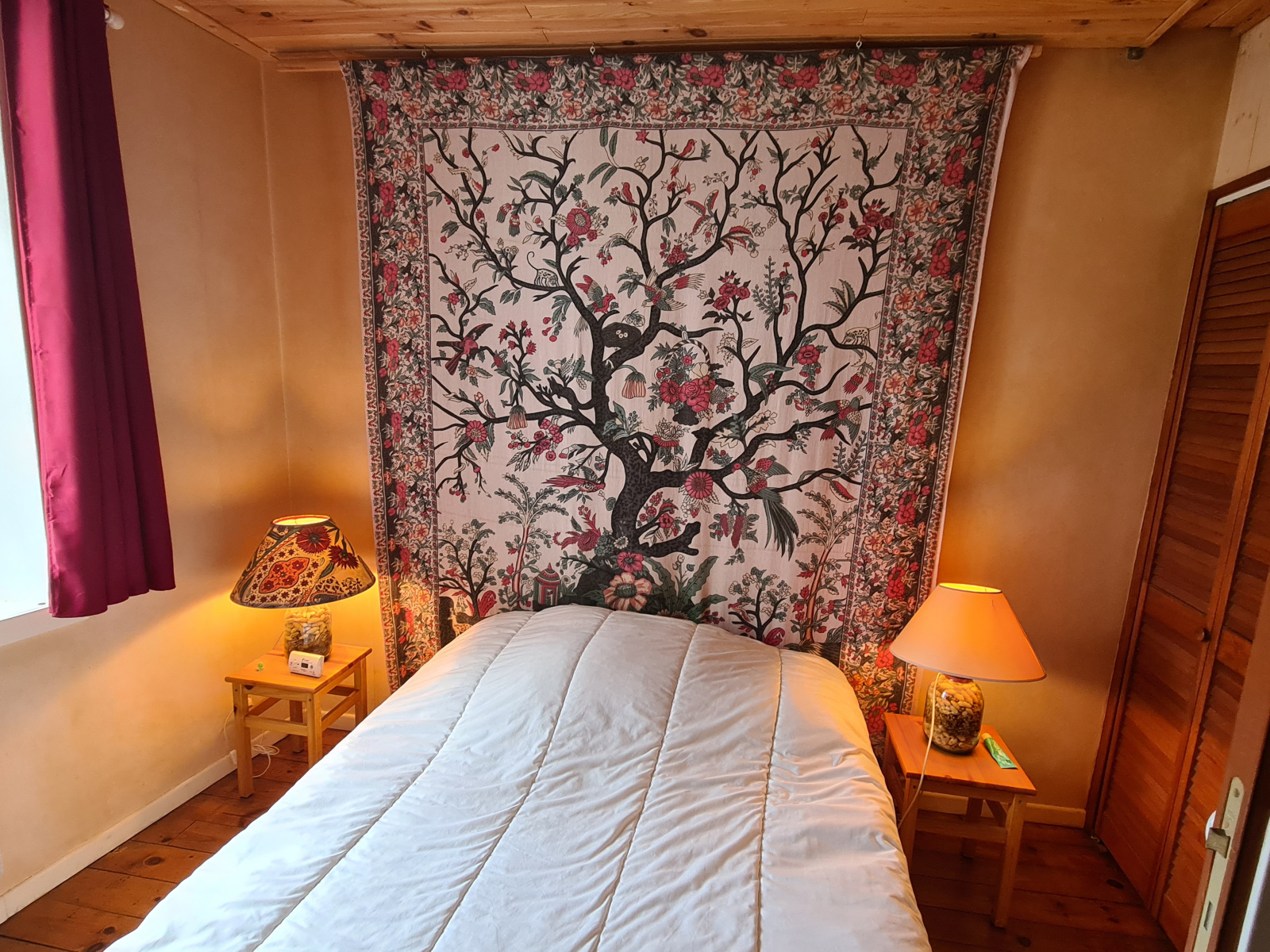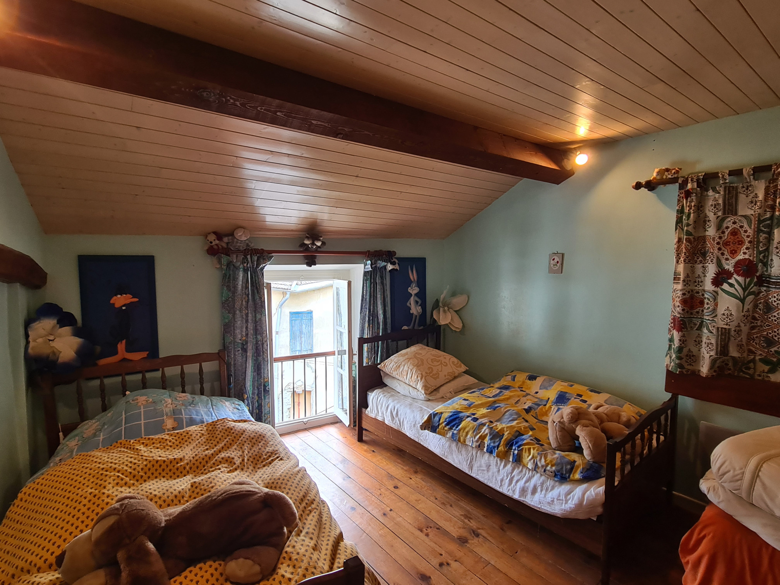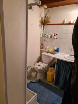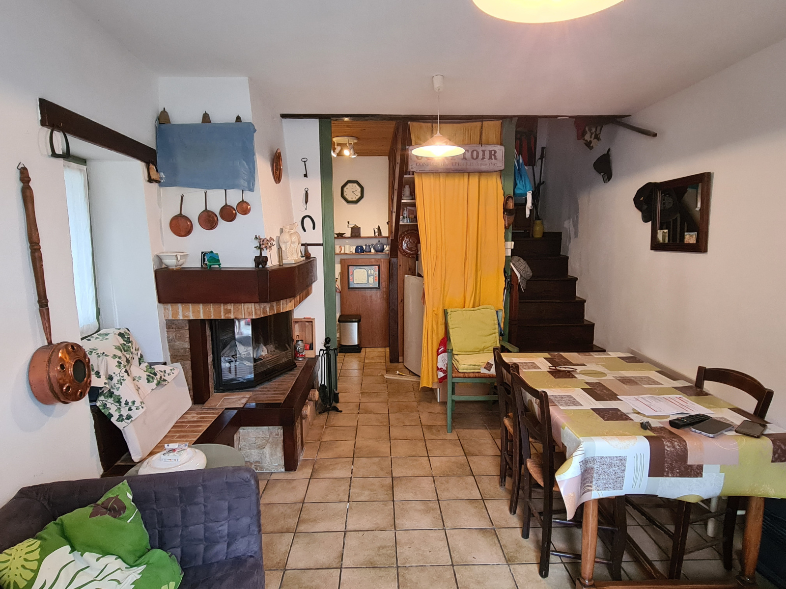 Une agréable maison avec terrasse, composée au rez de chaussée d'une pièce de jour, cheminée insert, coin cuisine; 1er étage une chambre, salle d'eau wc, au niveau supérieur une deuxième chambre, penderie.