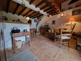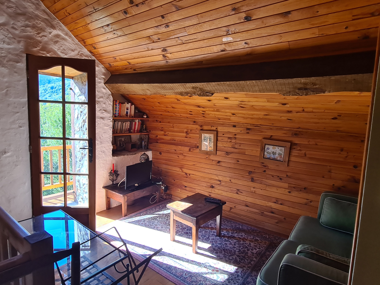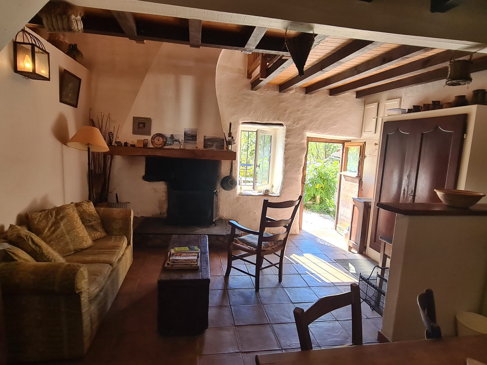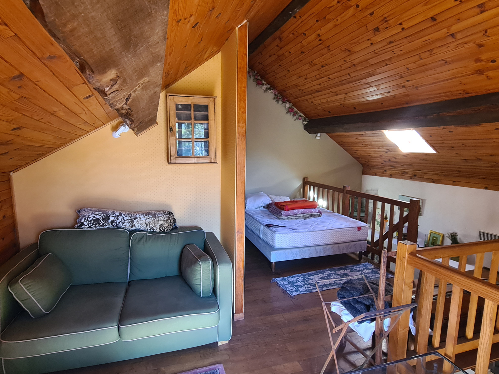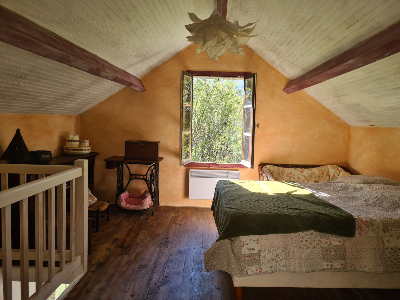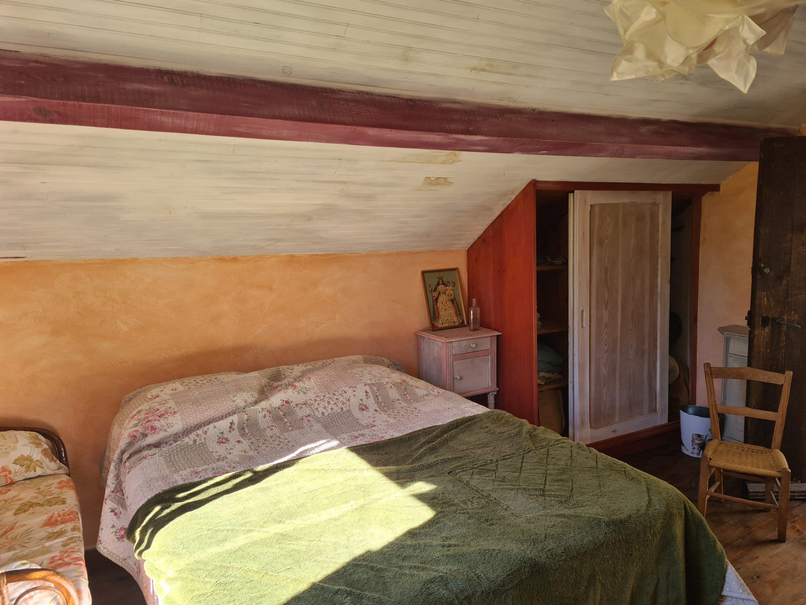 Une maison indépendante surface hab. 37 m2 , séjour coin cuisine cheminée four à pain 25 M2, terrasse. A l'étage mansardé, une chambre 10.50 m2, salle de bain wc 1.95 m2, balcon. A 3m de distance une autre maison composée d'une chambre mansardée 15.65 m2 , au rez de chaussée une cuisine 6.75 m2, salle d'eau wc 2.82 m2, cellier 1.47 m2terrasse. Une grange 20 m2 . Un terrain trés agréable, vue dégagée; deux emplacements pour garer les vérhicules.