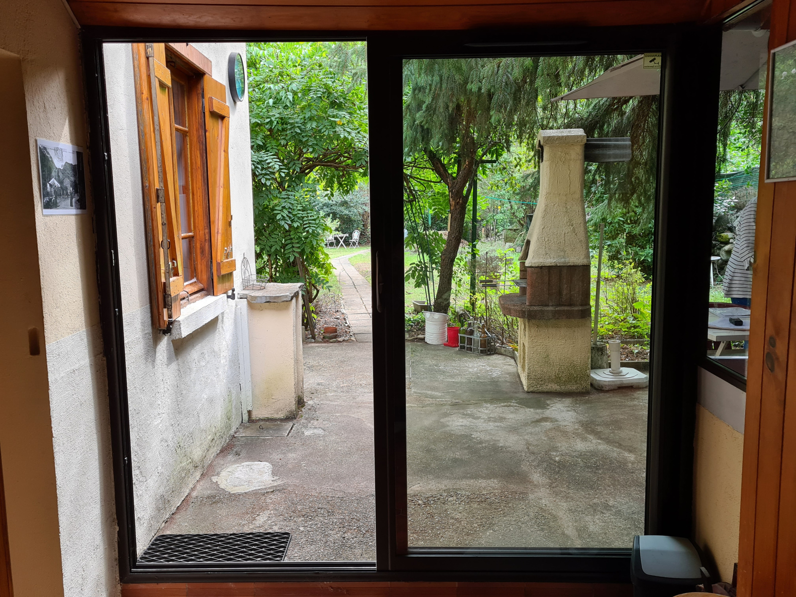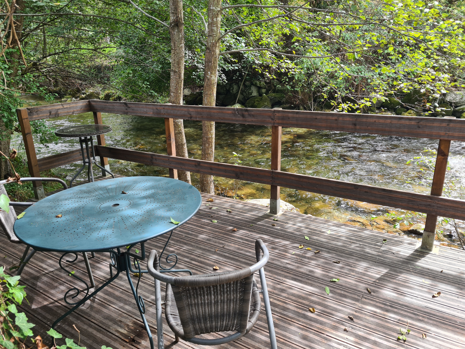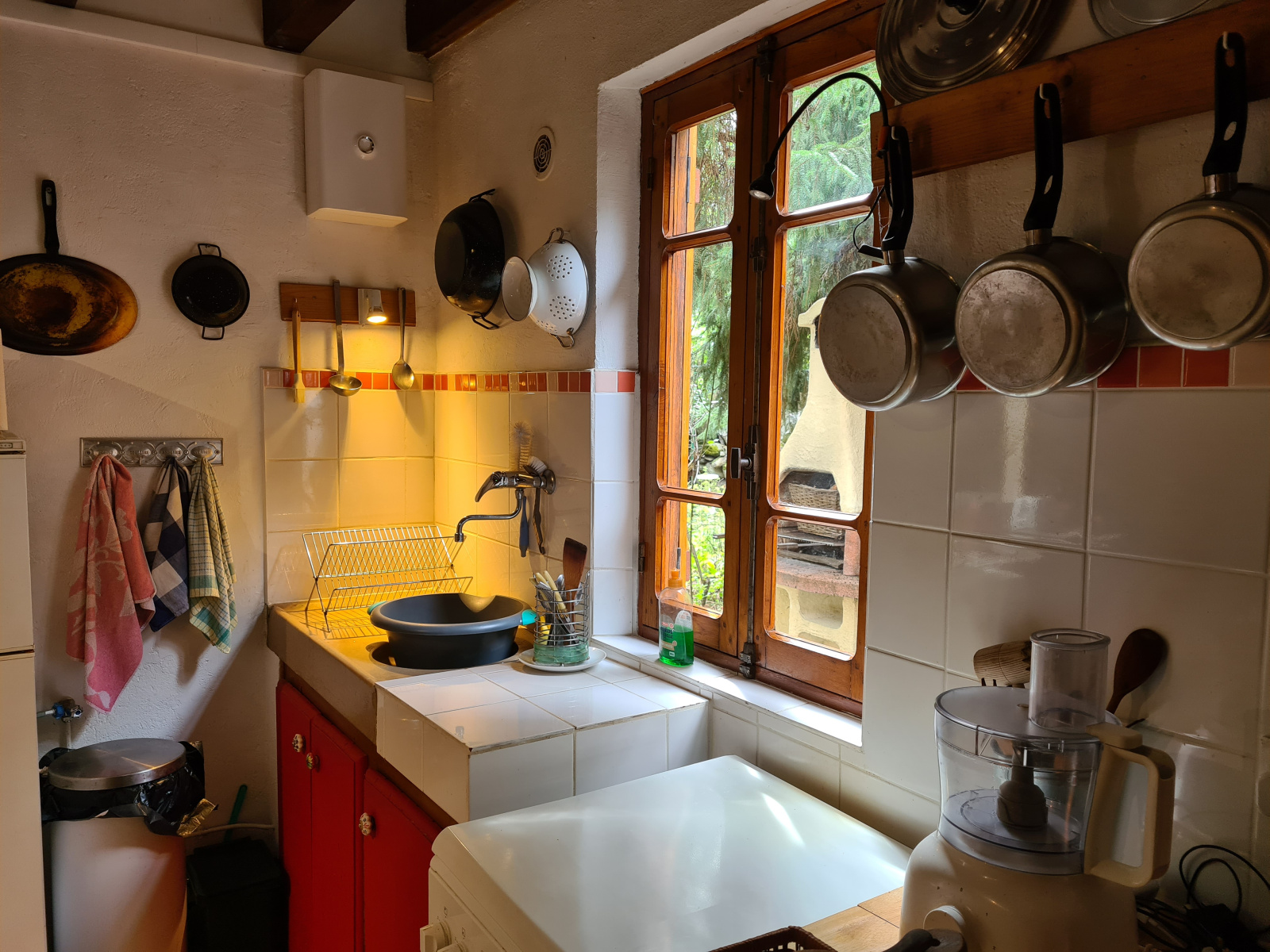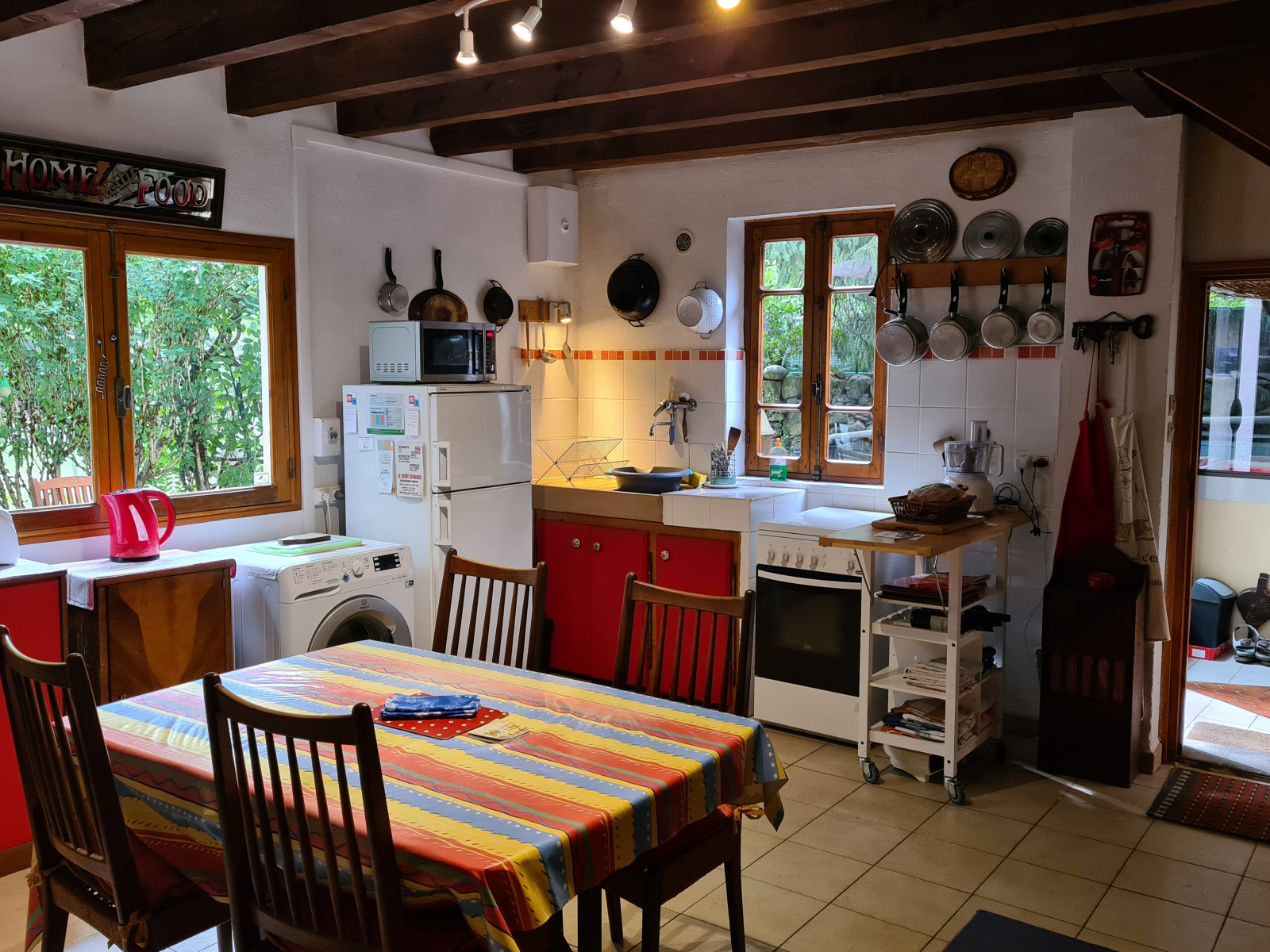 Maison en pierre indépendante avec jardin bordé par une riviére, terrasse au bord de l'eau. Habitation composée d'une entrée, d'un séjour coin cuisine, salle d'eau wc. A l'étage une spacieuse chambre, placards. Terrasse ombragée; Pas de promiscuité.