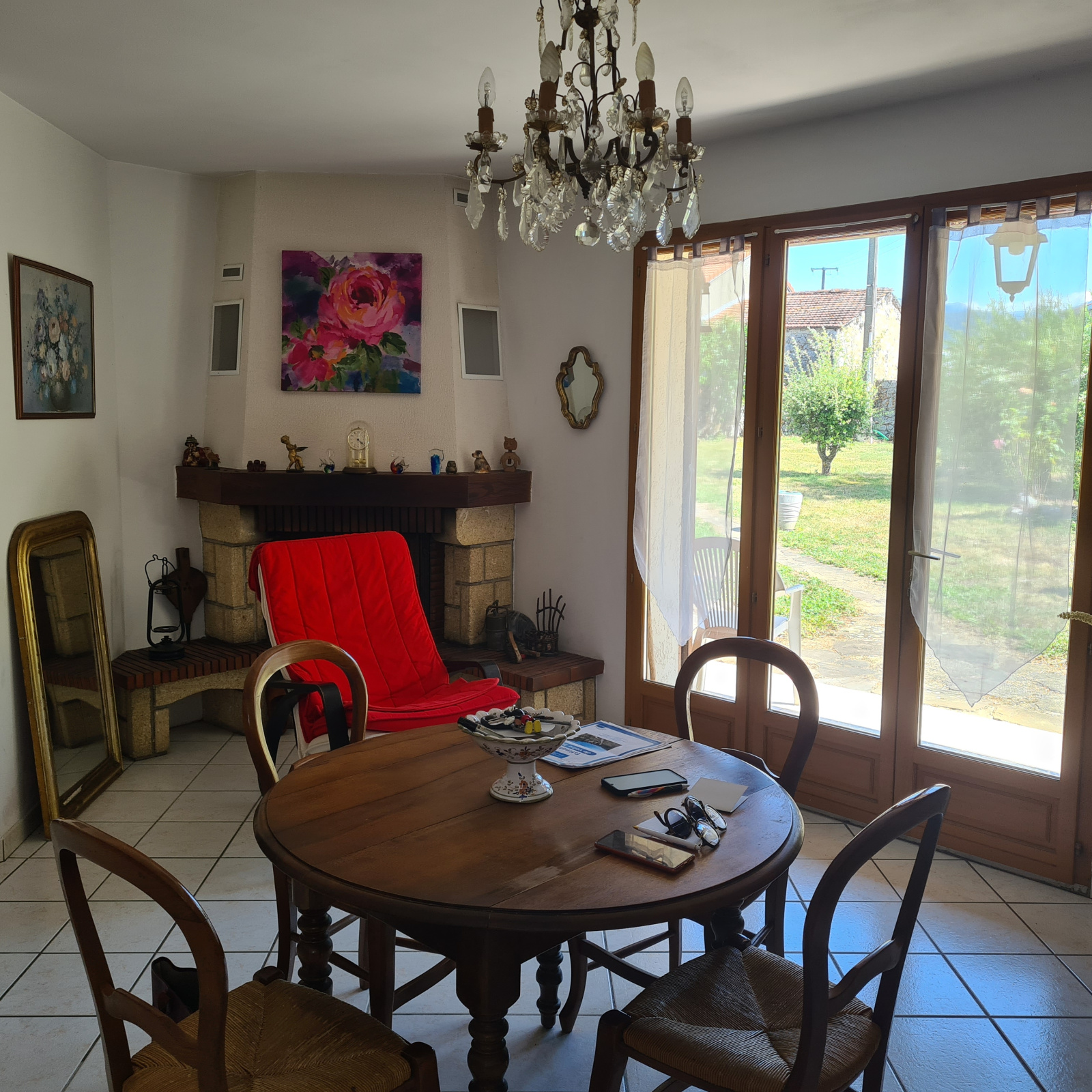 Villa de plain pied bâtie en 2000, deux garages attenants à l'habitation 14.70 m2 et 12.80 m2. Un terrain avec arbres fruitiers 2295 m2 plat. Habitation composée, d'un séjour avec cheminée insert, cuisine équipée, deux chambres, salle d'eau wc. Piéces lumineuses, trés agréable.